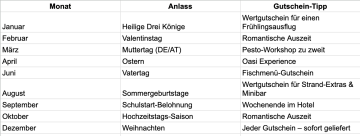 - Einfache Buchung – jeder Gutschein enthält einen eindeutigen Code, der bei der Reservierung von Zimmern, Tischen oder Erlebnissen eingetragen wird.