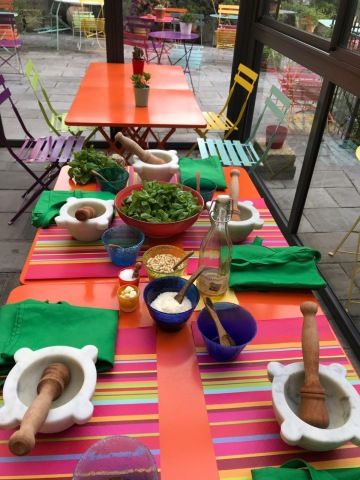 - Dreimal in der Woche organisieren wir einen Pesto-Kochkurs in unserem Garten oder auf der Veranda.