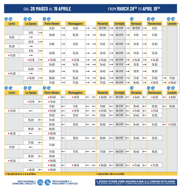 - Línea de referencia: Línea 02 (Cinque Terre), con conexiones a Porto Venere y Lerici.