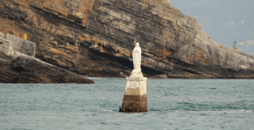 P.D. Junto a la isla más pequeña de Tinetto, se puede ver la estatua de Nuestra Señora, una Stella Maris que parece flotar pero que marca un afloramiento rocoso para los navegantes.
