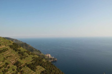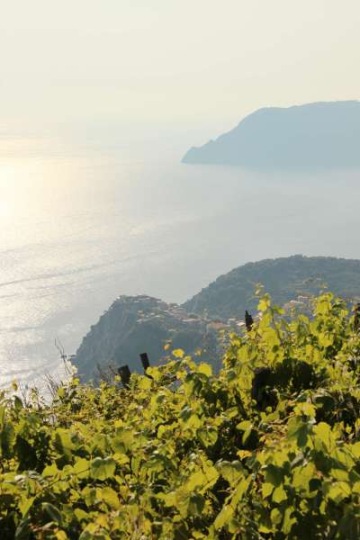 Le vignoble dans les Cinque Terre a remplacé les forêts il y a des siècles, lorsque la population a commencé à travailler la roche pour construire kilomètres des terrasses soutenues par des murs en pierre à sec, de grès et de gravier.