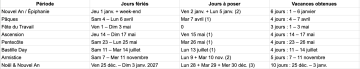 Quels sont les ponts et jours fériés en 2026 dans les pays francophones?
