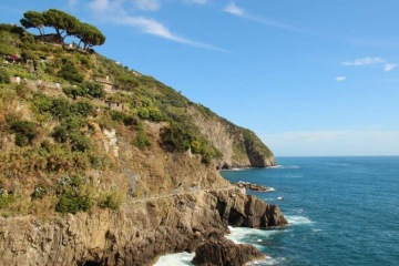 Cinque Terre, un site patrimoine mondial de l'UNESCO, est une partie de côte sauvage dans l'est de la Ligurie, composée de cinq villages qui se succèdent le long de la falaise : Monterosso, Vernazza, Corniglia, Manarola et Riomaggiore.