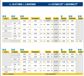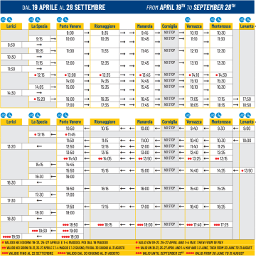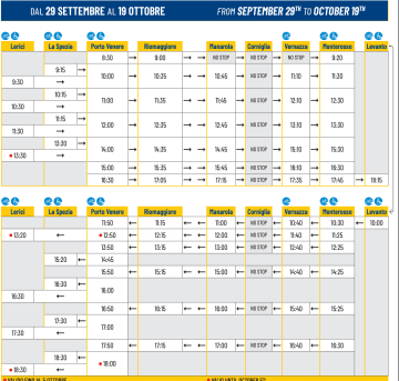 Orari dei battelli in partenza da Levanto, per le Cinque Terre e Porto Venere