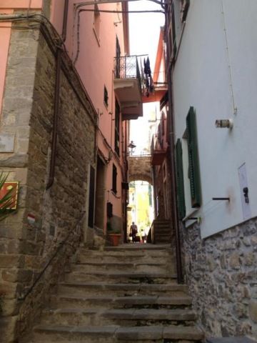 Il paese però è qualche gradino più in alto e da qui ci sono tre opzioni: la bellissima e panoramica scalinata in mattoni detta ‘Lardarina’ composta da 33 rampe e ben 377 gradini oppure la strada carrozzabile o ancora i minibus elettrici del Parco Nazionale delle Cinque Terre, il cui biglietto è incluso nella Cinque Terre Card.